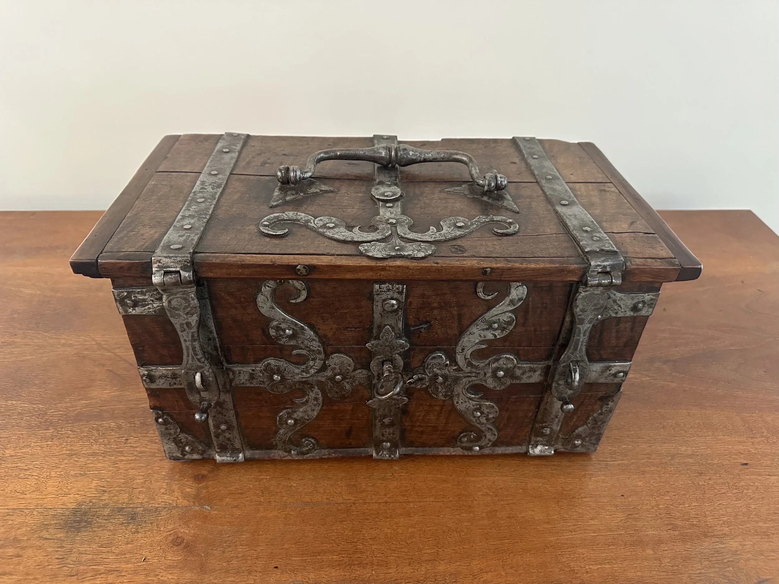Antique Brass-Mounted Wooden Chest – 13.5”x9.5”
