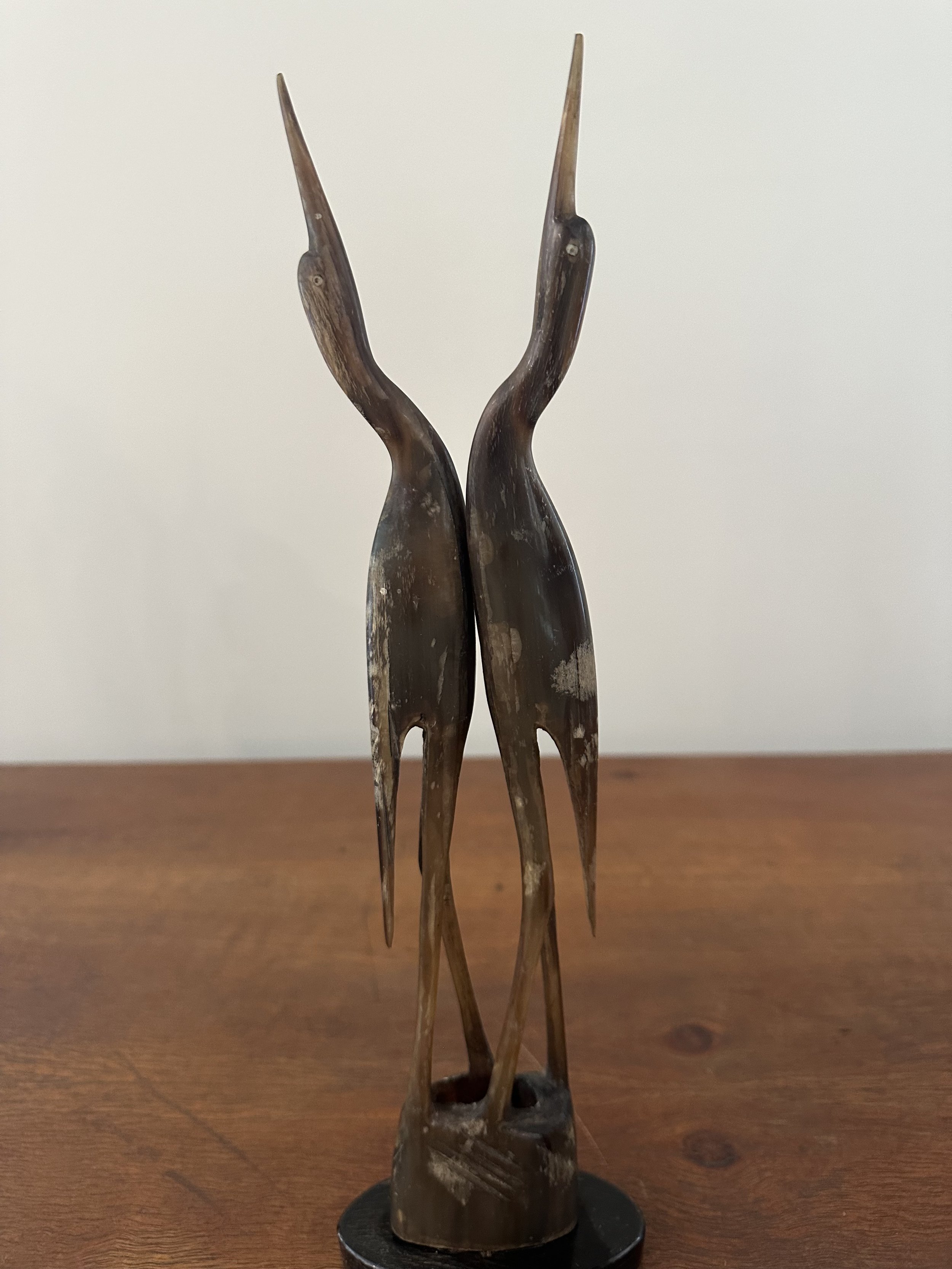 Vintage Hand-Carved Crane Bird Sculpture, 13”
